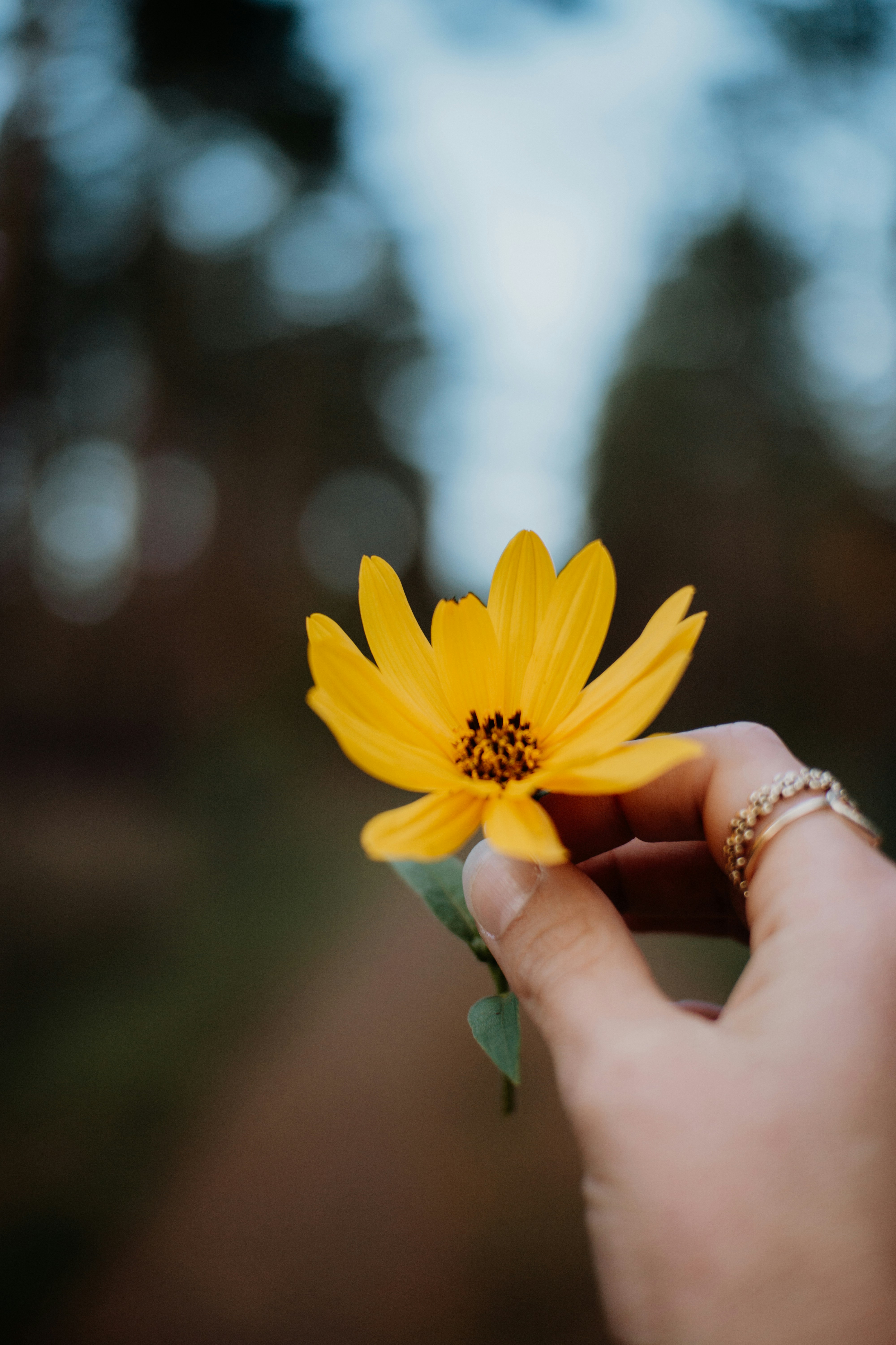 Description: shallow focus photo of yellow flower photo – Free Person Image on